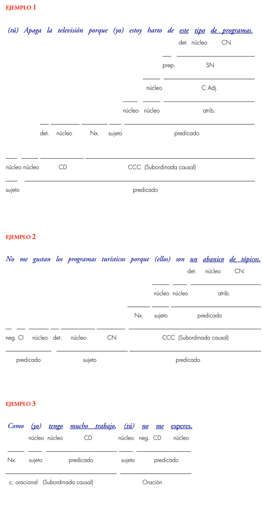 Ejemplos de análisis sintáctico de los tipos de oraciones compuestas