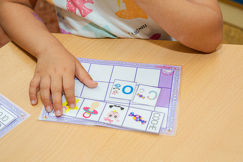 Para la adquisición de la conciencia silábica (sílabas), partimos de palabras. Estas palabras pueden estar relacionadas con alguna temática y/o campo semántico que estemos trabajando en nuestras SdA, (profesiones, animales, alimentos, etc.) o partir de algún centro de interés o problema que resulte significativo para nuestro alumnado. De igual modo que en el apartado anterior, podemos recurrir a infinidad de juegos y actividades para que los niños y las niñas dividan las palabras en sílabas y las cuantifiquen. Por ejemplo: gato -> ga - to.
