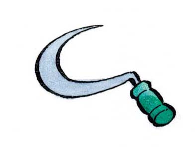 7.7. El nom de Jordi en grec significa ‘pagès’, i el gest de clavar la llança al cor del drac es compara amb l’embat de l’arada que fereix la terra perquè doni els seus fruits. Escriu les paraules destacades del text al costat de la il·lustració que els correspon.